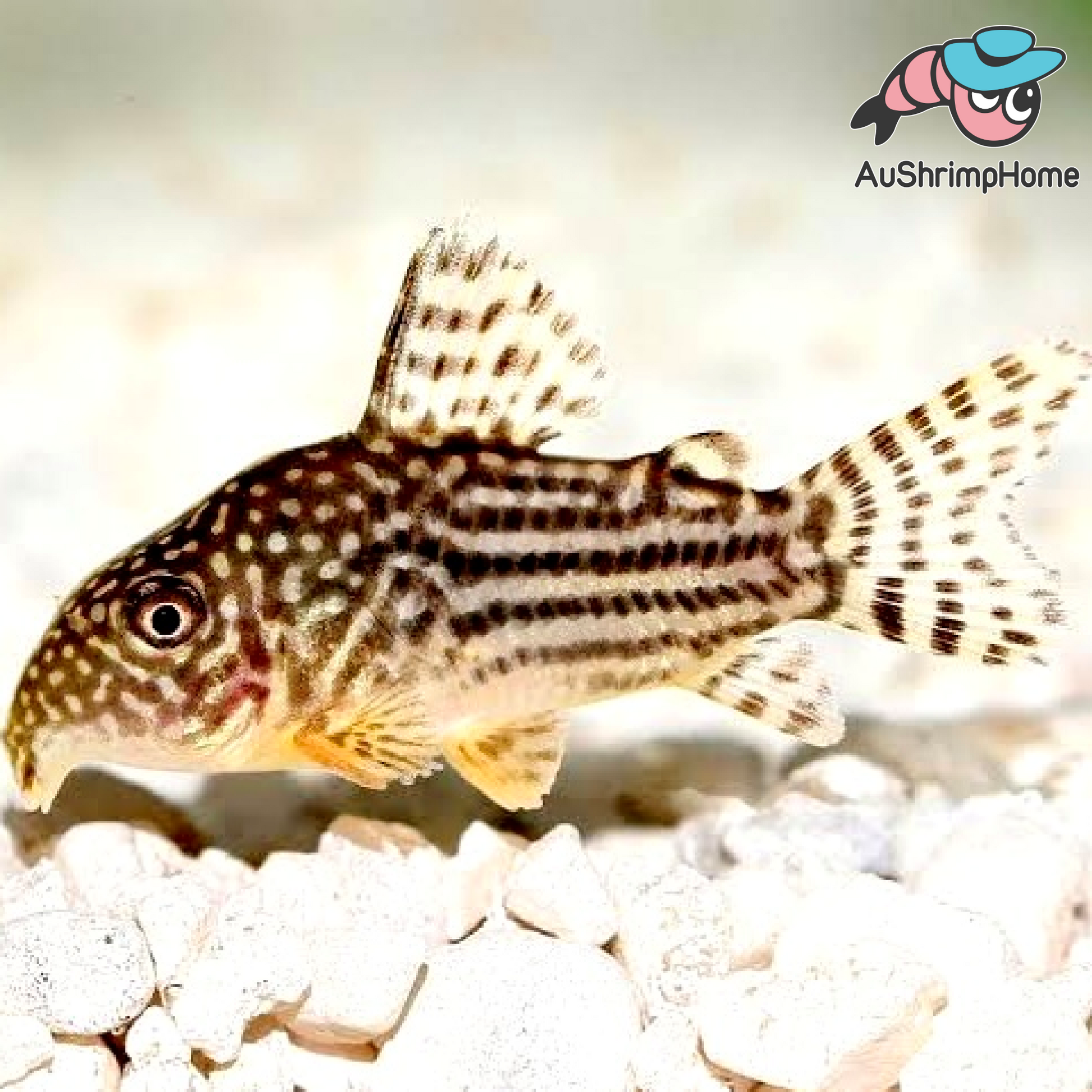 Corydoras sterbai, commonly referred to as Sterba's Corydoras, is a distinctive and popular species of freshwater catfish known for its striking appearance and peaceful nature. These catfish are beloved by aquarists for their captivating markings and amiable behavior.
