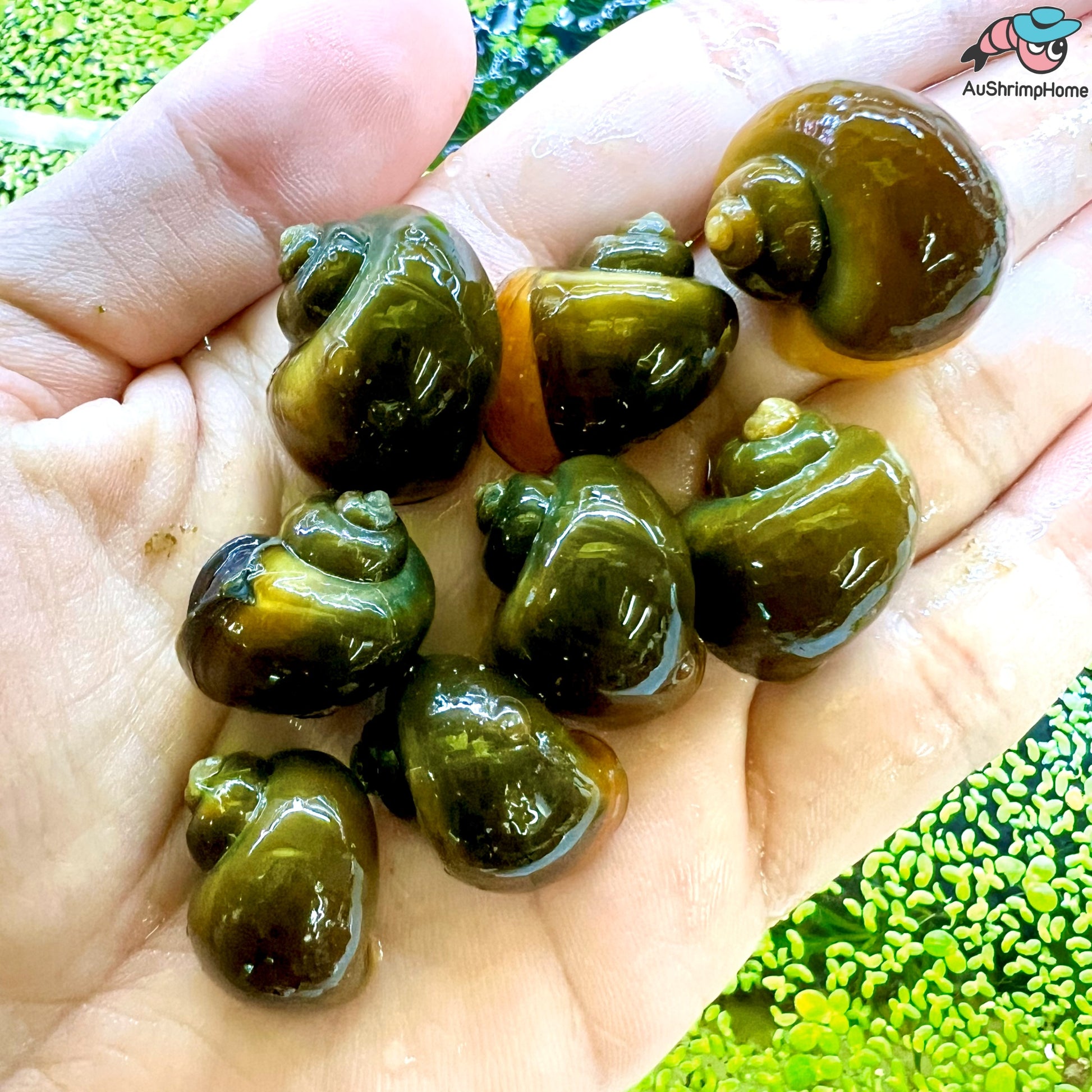 Rare Jade Coloration – Each snail has a smooth, spiral-shaped shell in varying shades of green, ranging from pale mint to deep jade. Their eye-catching color makes them a standout in any aquascape.
