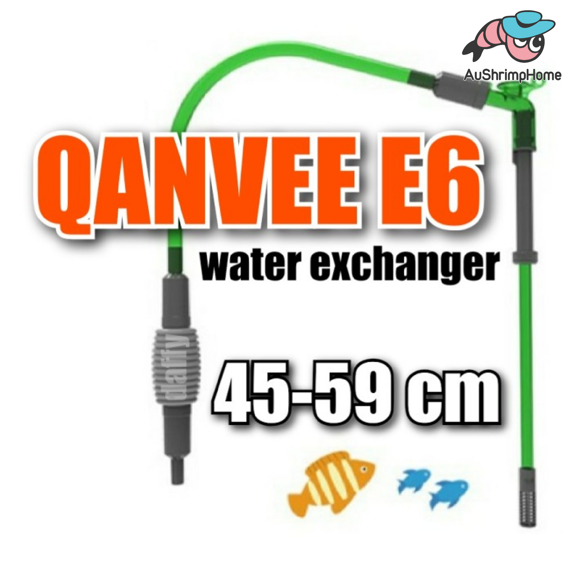 Qanvee aquarium water siphon for water exchange and cleaning of aquarium tank. Easy use manual pump initiates siphon of tank water for quick and easy water changes.